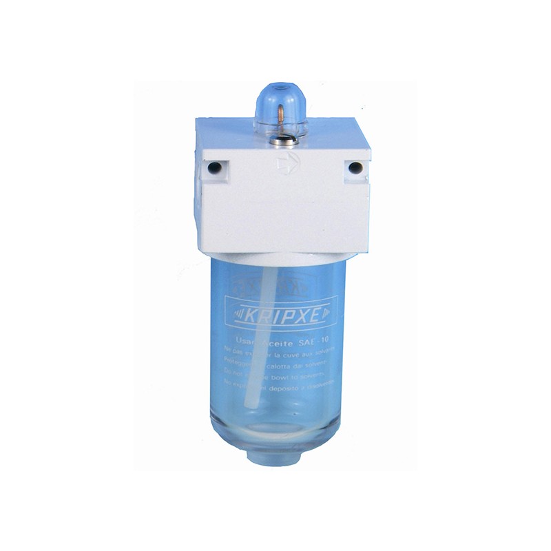 Lubricador de aceite para instalaciones neumáticas, con regulador de caudal de aceite.