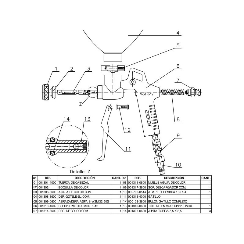 MOD. K-12 K-12J Y K-12T JUNTA TORICA 13X2 000117-0600 0,40 € Para mod. K-12, K-12J Y K-12T Añadir al carrito